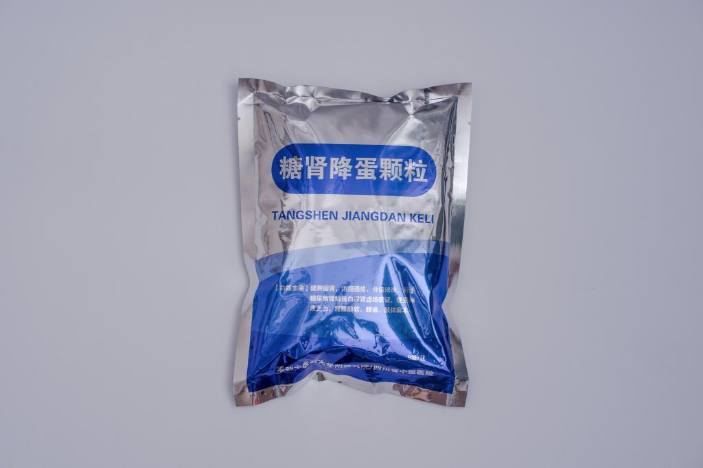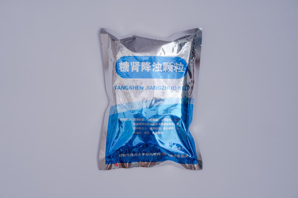 Functions and indications: Invigorating spleen and consolidating kidney, dissolving blood stasis and detoxifying, raising the clear and directing the turbid downward. It is suitable for diabetic nephropathy with renal failure in syndrome of kidney deficiency with turbid toxins; and the symptoms include low spirit and fatigue, soreness and weakness of waist and knees, nausea and vomiting, skin itching, lower back pain, and numbness of limbs.