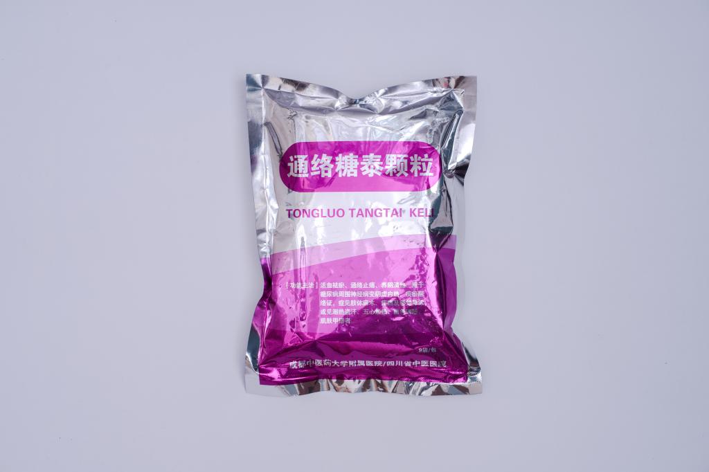Functions and indications: Invigorating blood and removing stasis, unblocking collaterals and relieving pain, nourishing yin and clearing heat. It is suitable for diabetic peripheral neuropathy in syndromes of yin deficiency and internal heat, phlegm and blood stasis obstructing the collaterals; and the symptoms include the numbness, pain and paresthesia of limbs, or tidal fever and night sweat, vexing heat in the chest, palms and soles, gloomy complexion, and dry scaly skin.